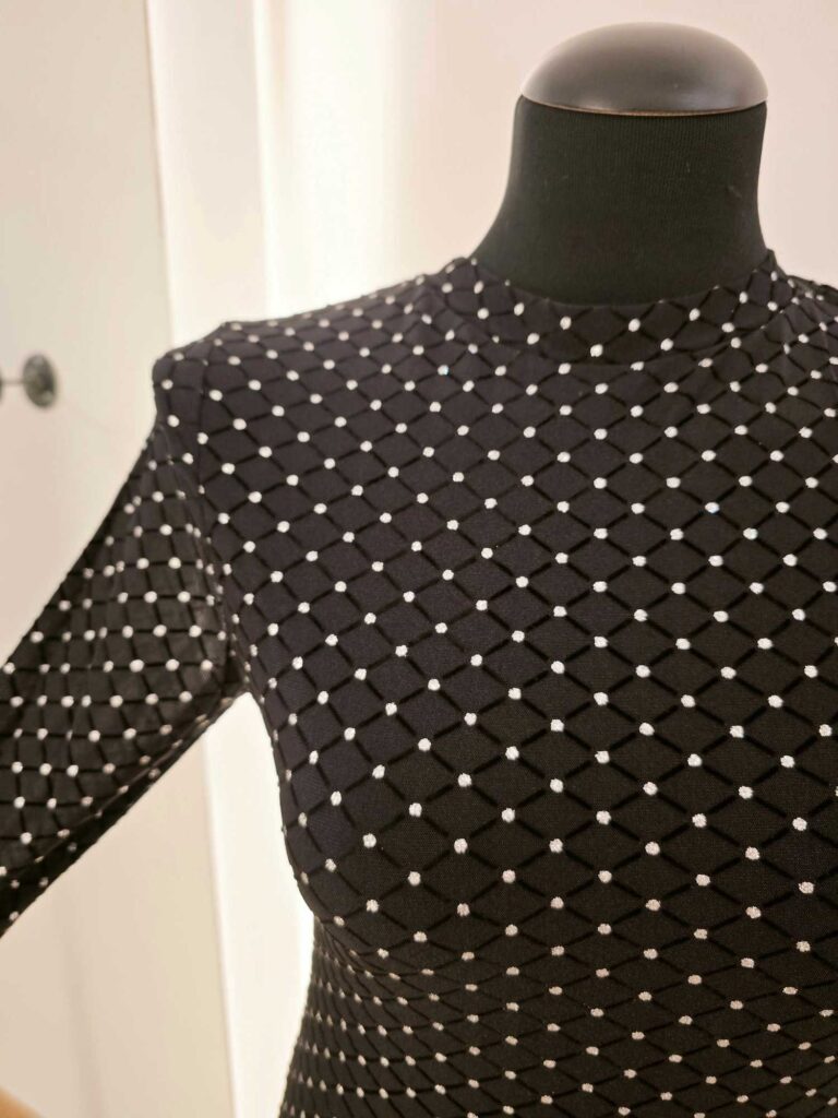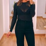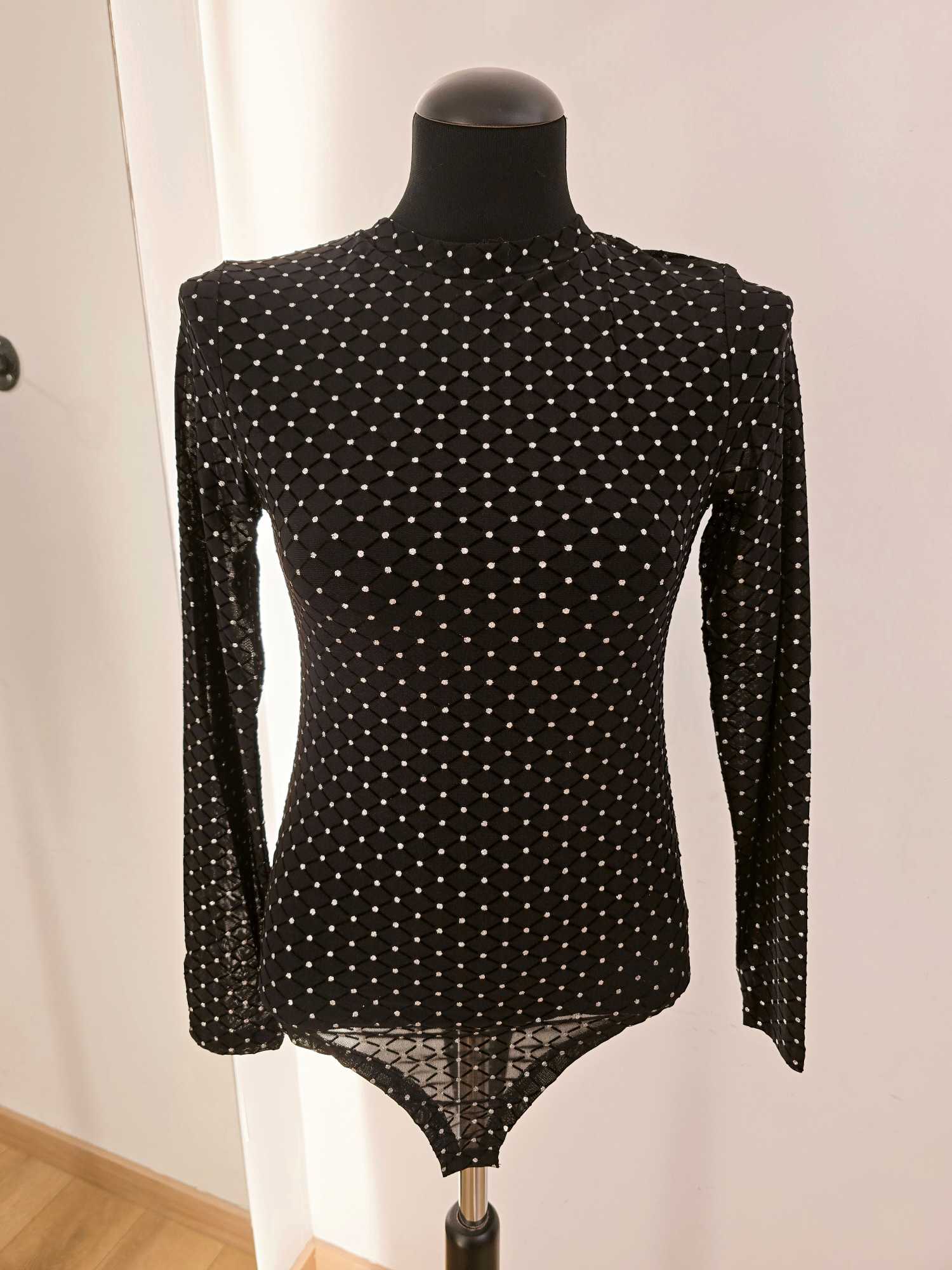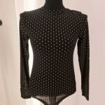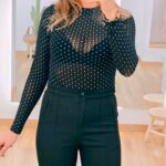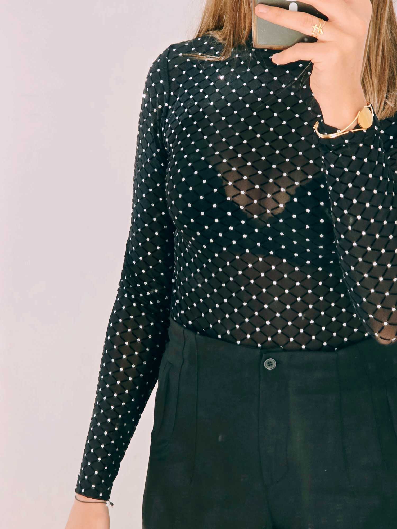 Ce body noir orné de strass apporte juste ce qu’il faut de lumière. Le motif régulier crée un effet scintillant raffiné, idéal pour une tenue habillée, une soirée ou les fêtes.