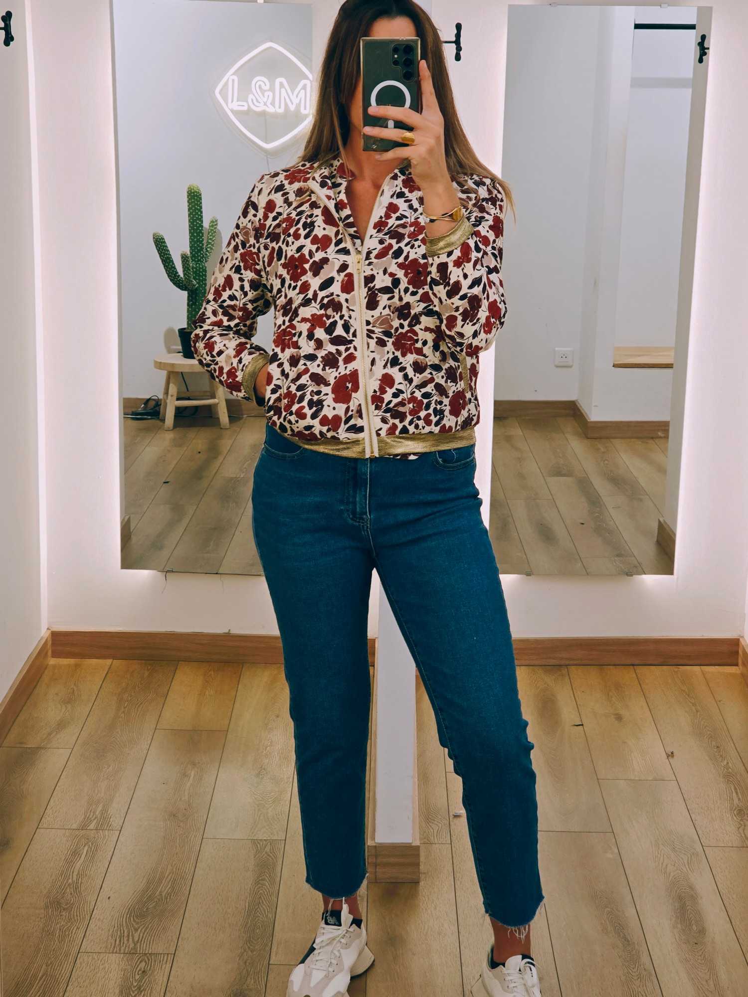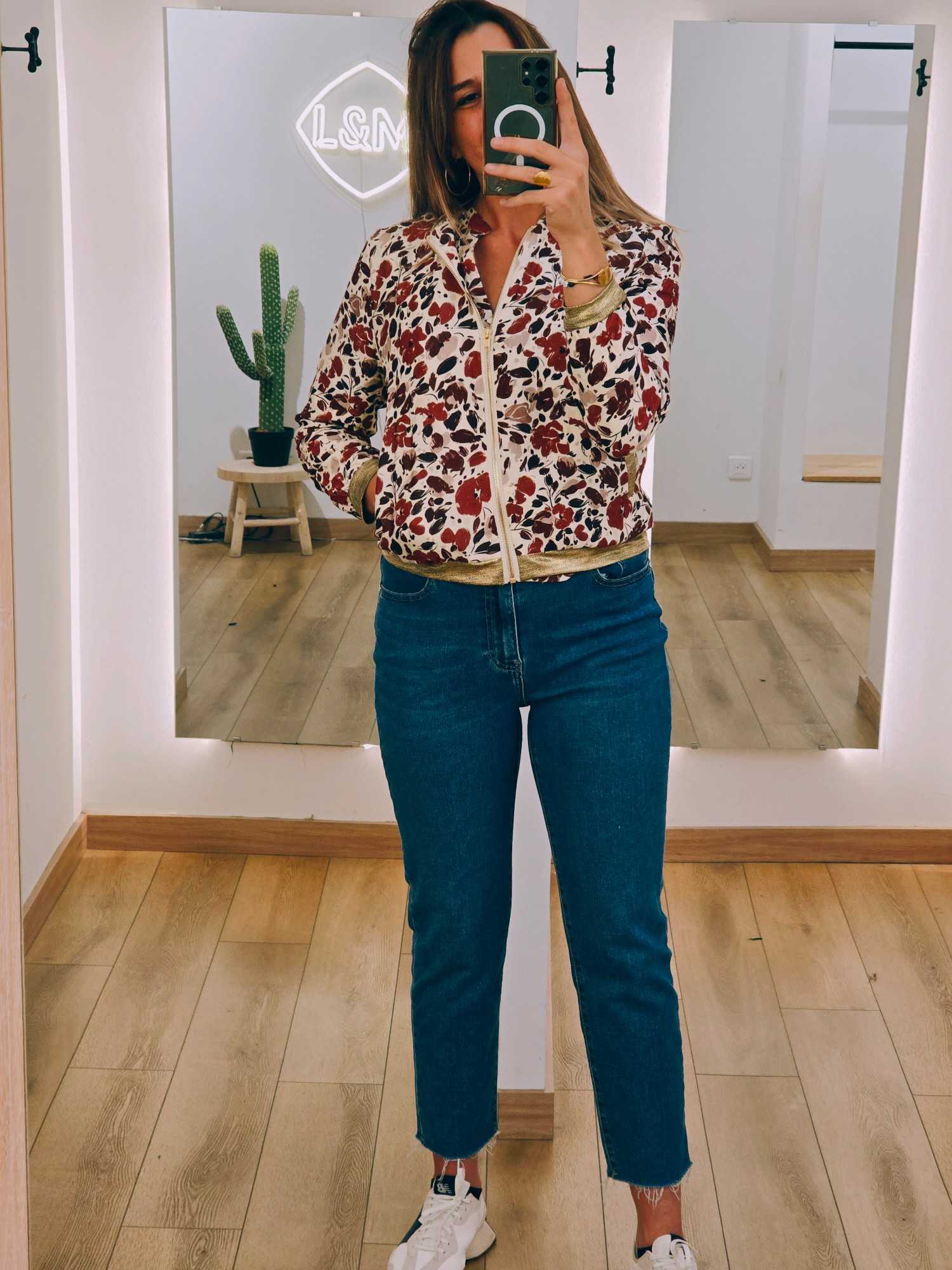Les détails dorés au col et aux bas de manches apportent une touche lumineuse et raffinée, soulignant la silhouette avec subtilité. Confortable et léger, ce bombers femme se porte aussi bien avec un jean qu’une jupe pour un look casual chic ou plus habillé.