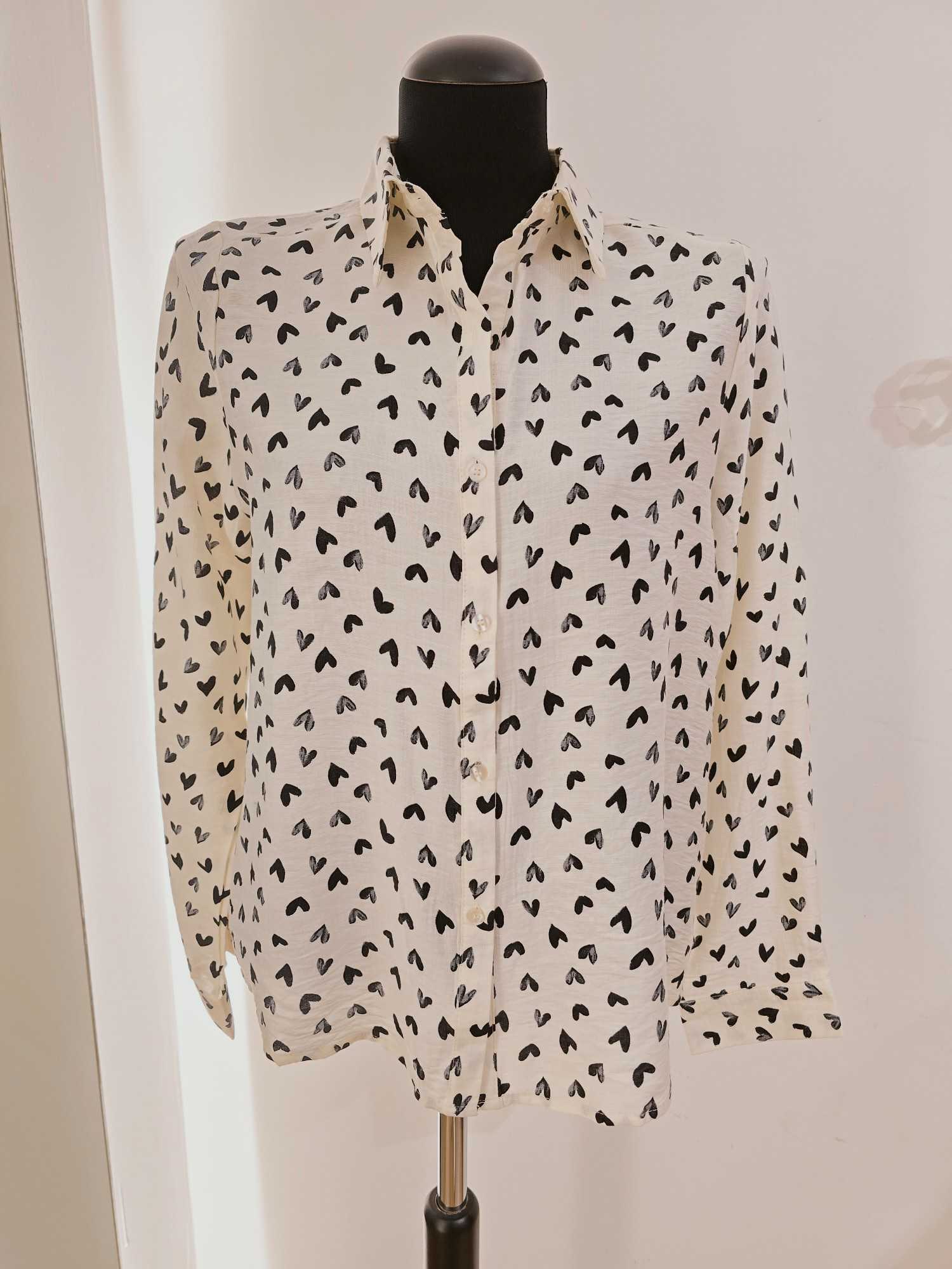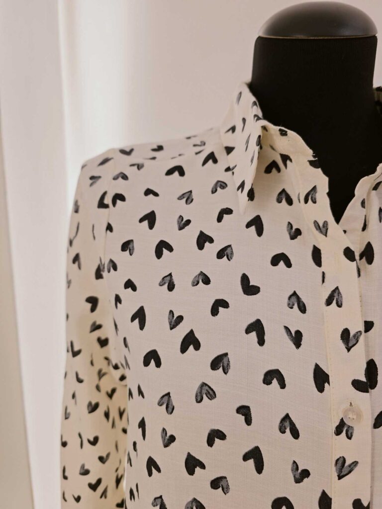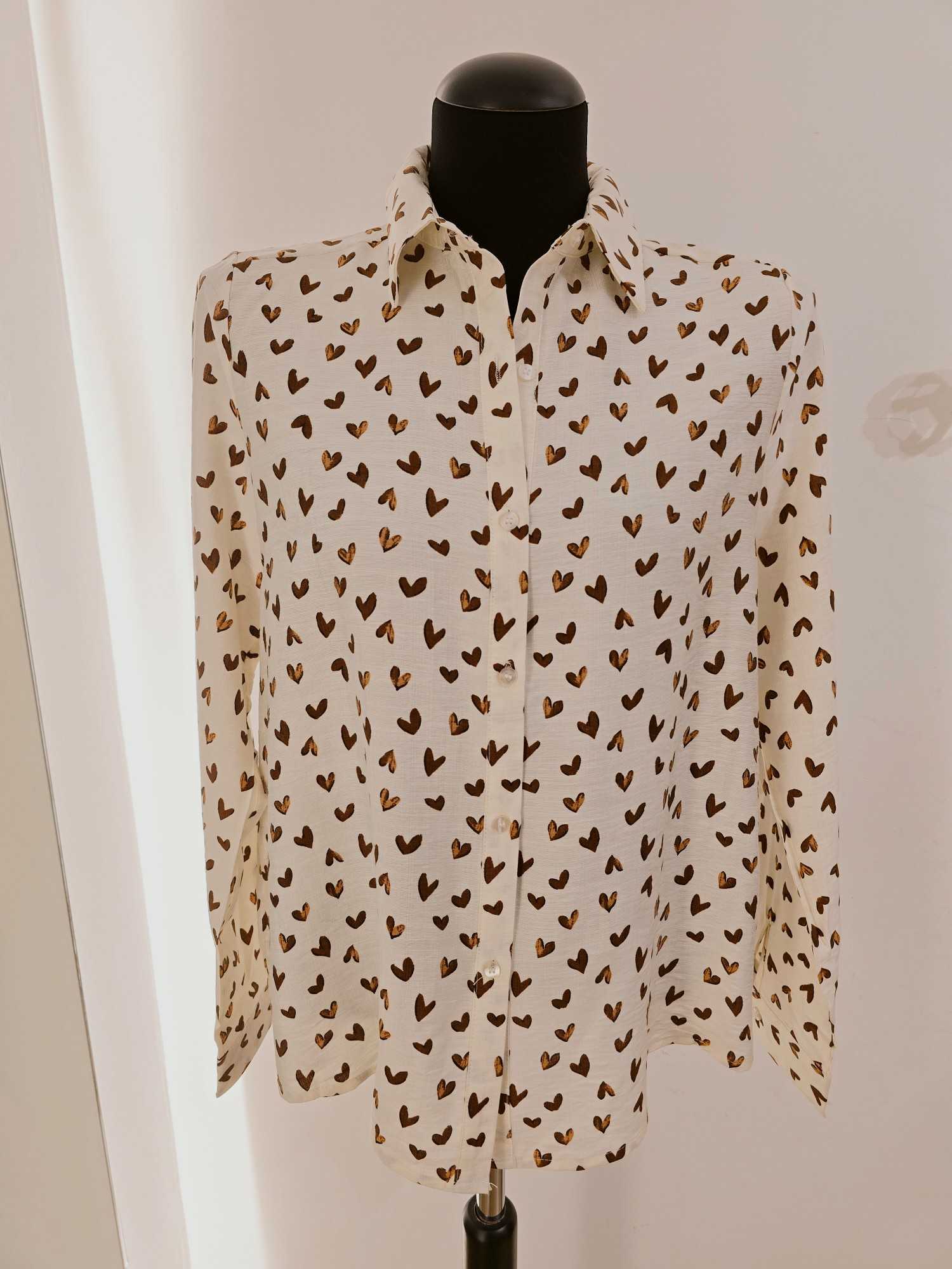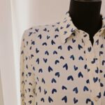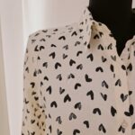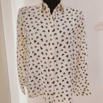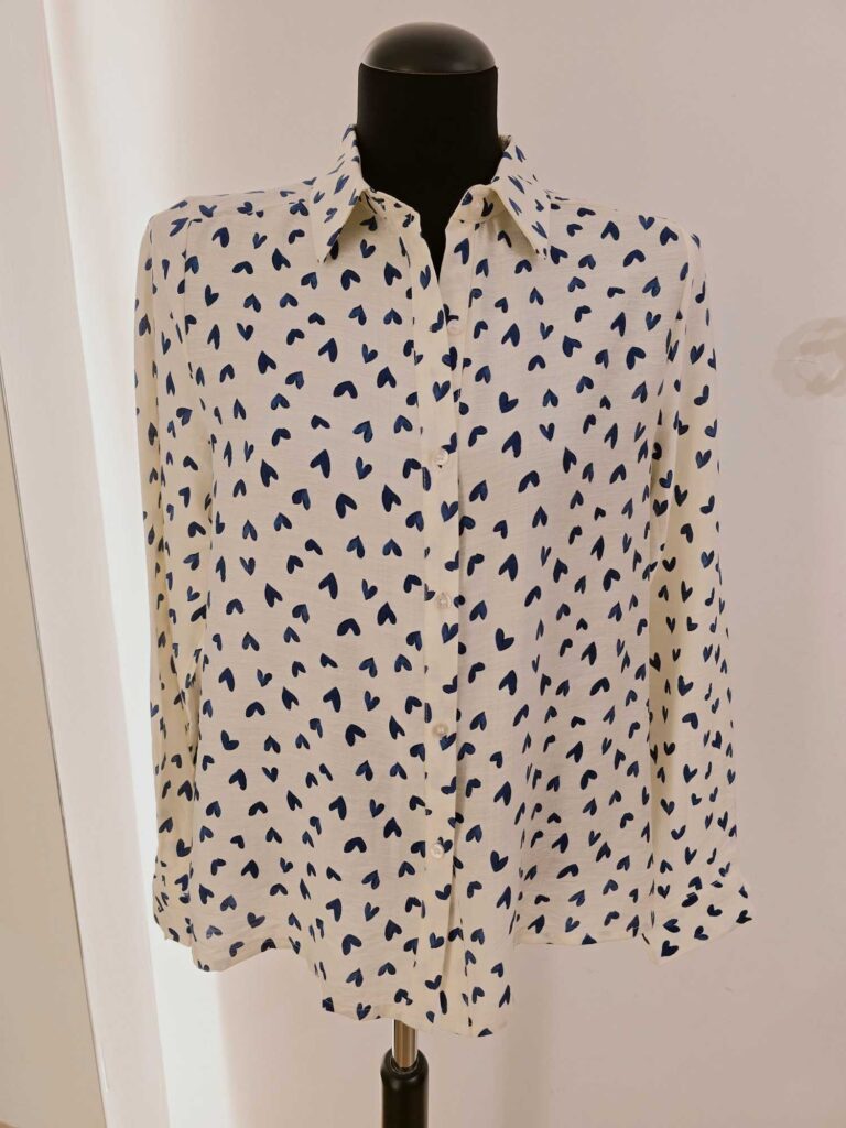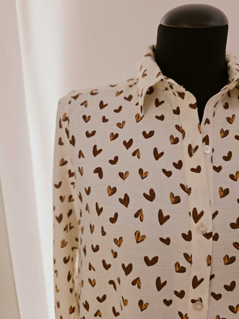 Cette chemise crème est rehaussée d’un adorable motif de cœurs. Un design doux et pétillant, facile à porter sans être trop chargé.