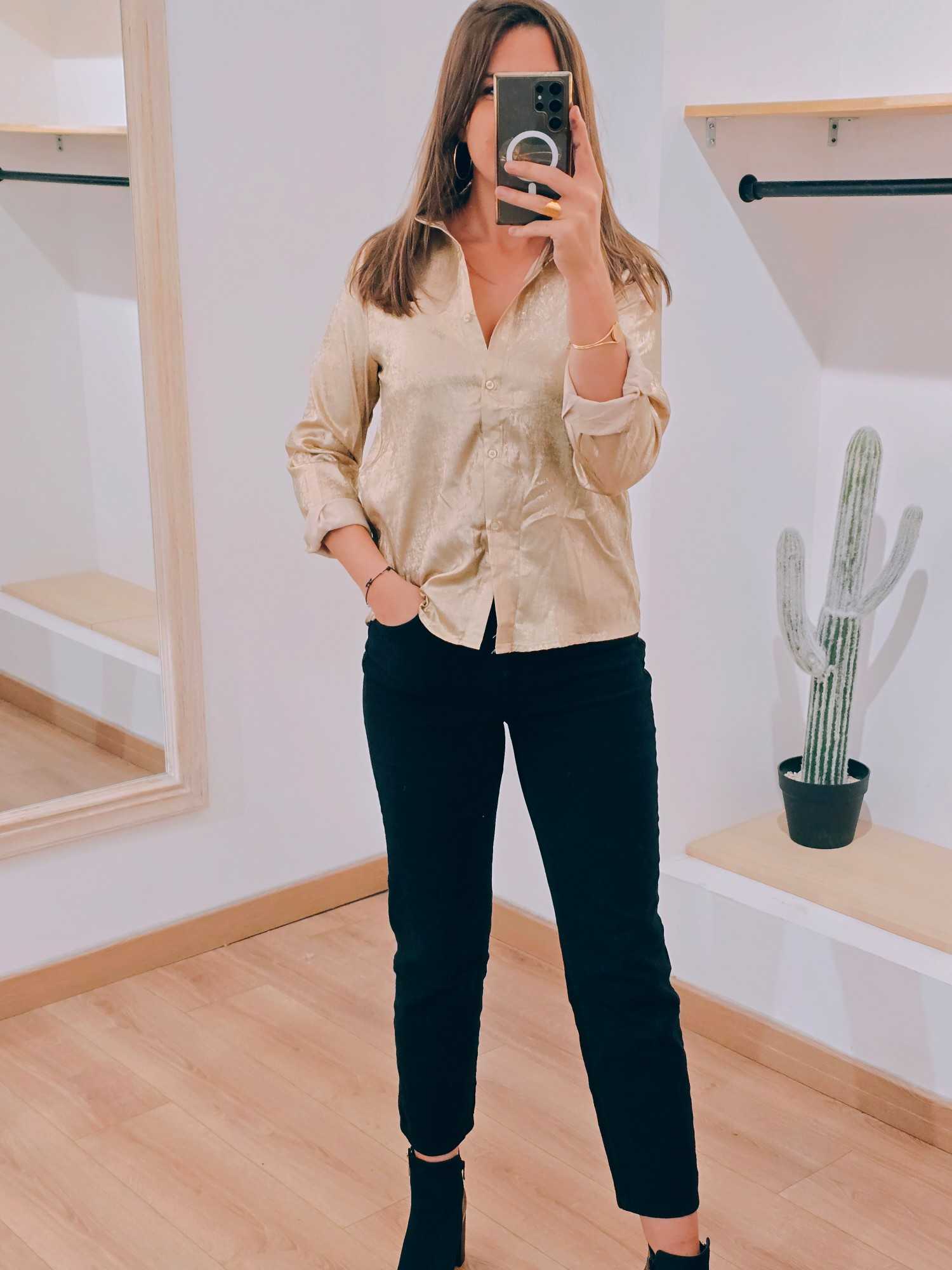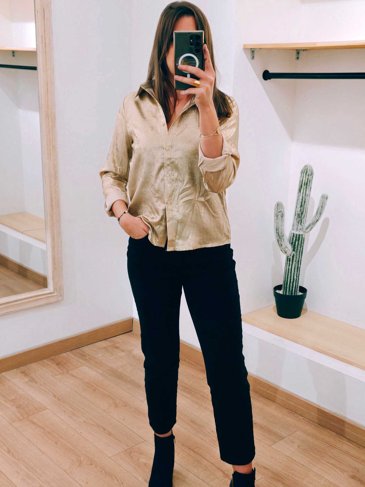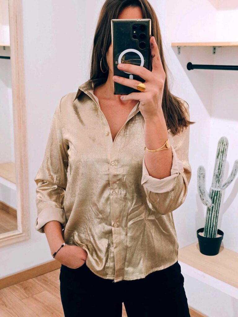 Brillez avec élégance grâce à notre chemisier full doré, une pièce iconique pensée pour toutes celles qui souhaitent se démarquer avec style. Confectionné dans un tissu métallisé lumineux, ce chemisier doré offre un éclat irrésistible et un rendu haut de gamme. Sa matière douce et légèrement satinée reflète délicatement la lumière, créant un effet scintillant unique sans être excessif. Que ce soit pour une soirée chic, un événement spécial, une fête de fin d’année ou pour apporter une touche glamour à votre tenue du jour, ce chemisier doré deviendra rapidement un indispensable de votre garde-robe.