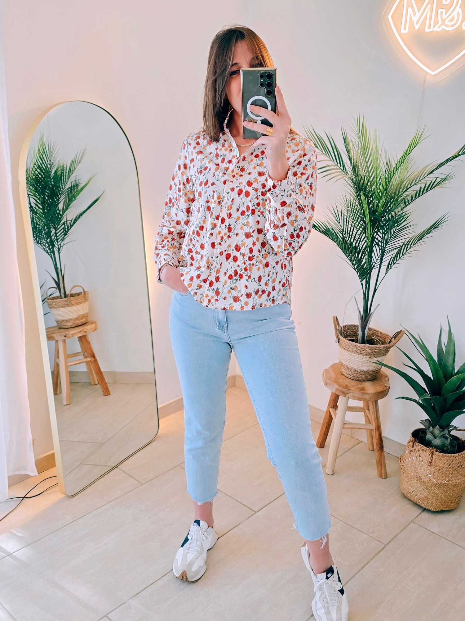 Confectionné dans un coton doux et respirant, ce chemisier est parfait pour un look casual chic ou une tenue plus habillée. Il se marie facilement avec un jean, une jupe ou un pantalon élégant pour un style polyvalent et tendance.