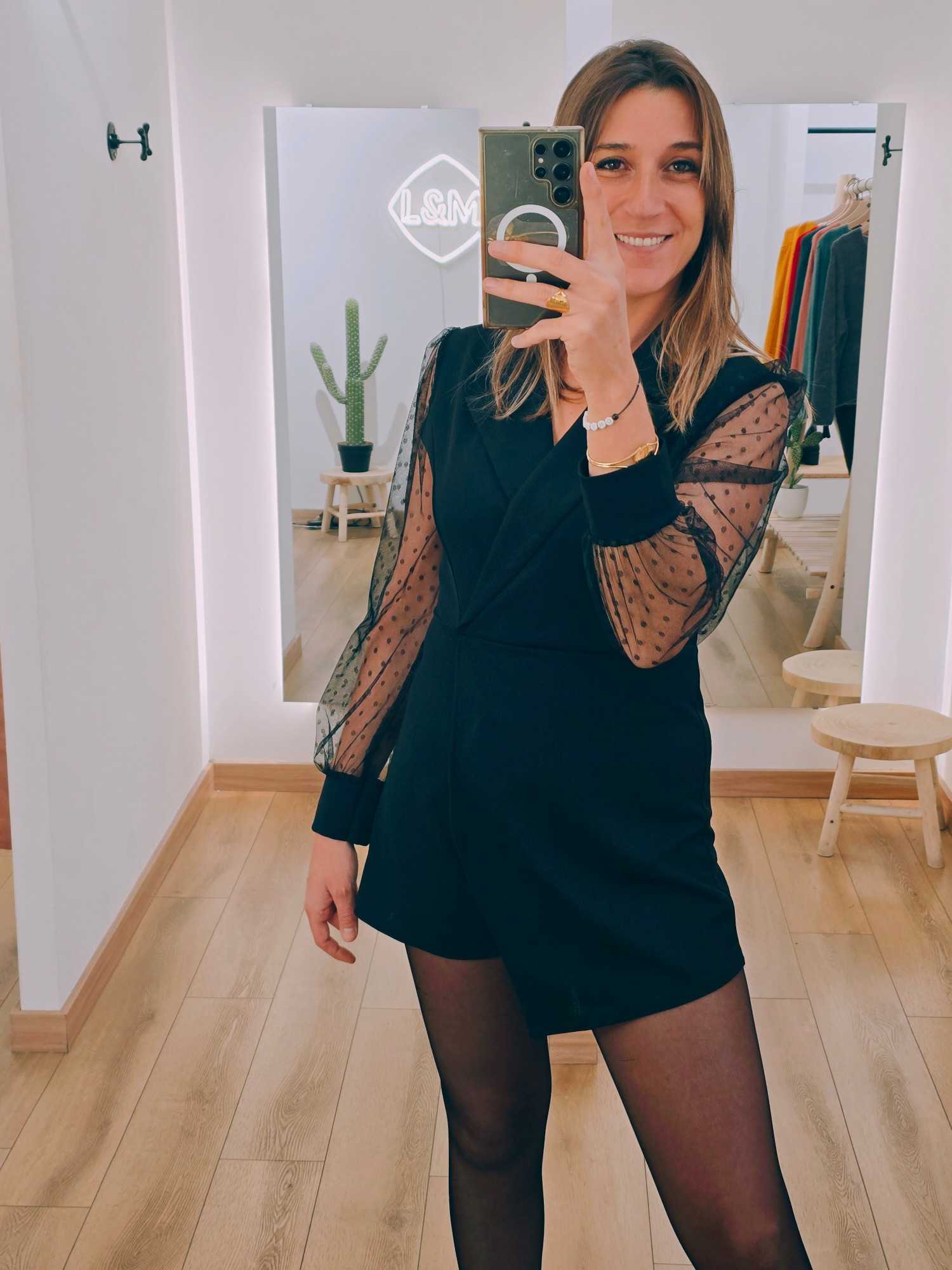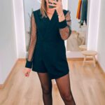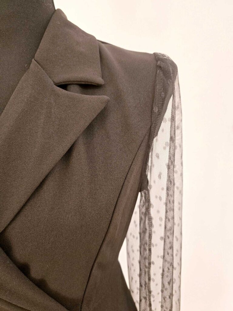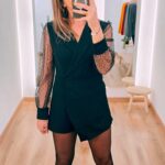 Affirmez votre style avec ce somptueux combishort blazer, une pièce féminine et moderne qui revisite le tailleur classique. Confectionné dans une matière fluide et agréable à porter, il adopte une coupe blazer structurée qui sublime la silhouette et apporte immédiatement une touche chic. Ses manches longues en résille transparente sont ornées de petits pois délicatement brodés, un détail subtil qui ajoute du charme, du raffinement et une pointe de sensualité à l’ensemble.