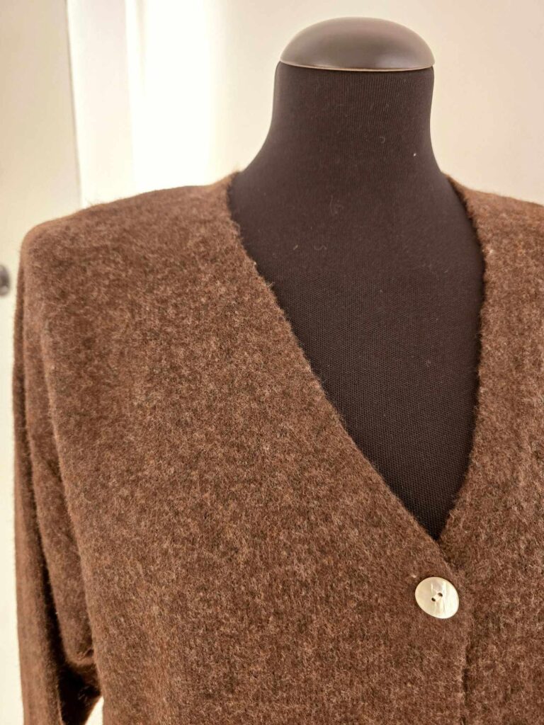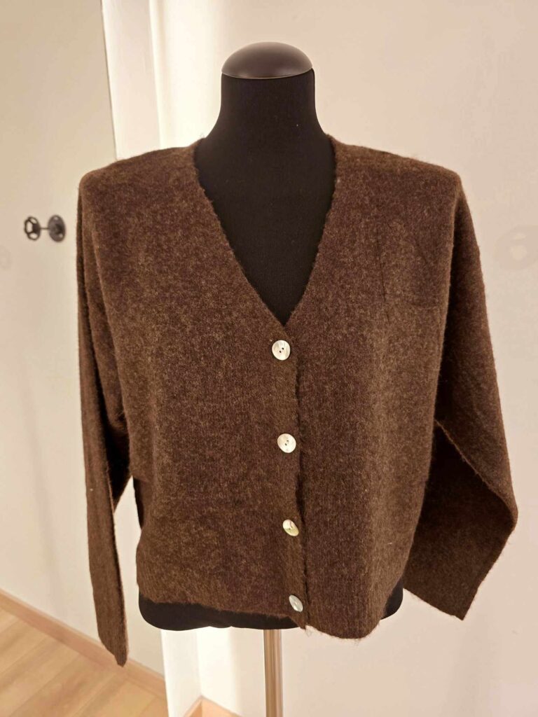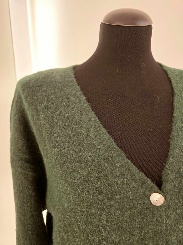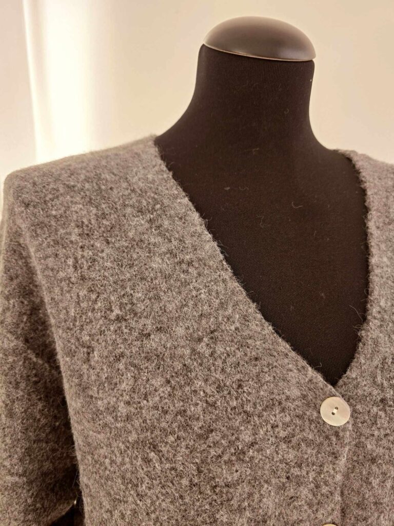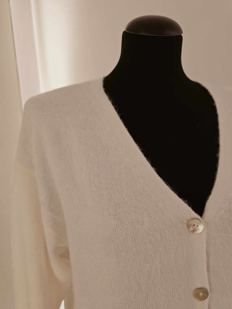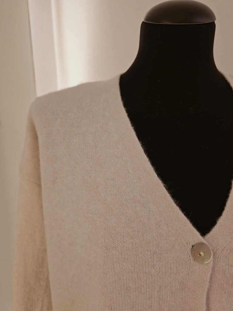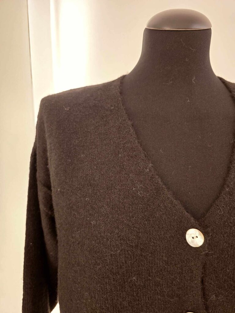 Son design épuré est rehaussé par une jolie patte de boutonnage ornée de boutons nacrés, apportant une touche discrète et raffinée.