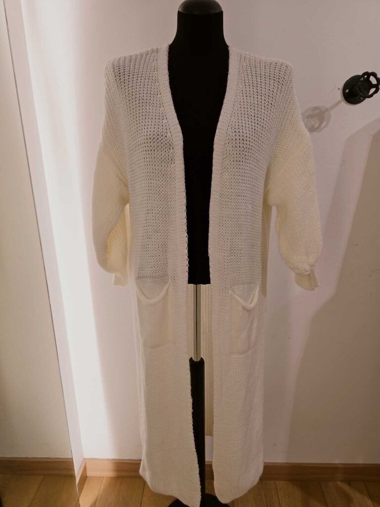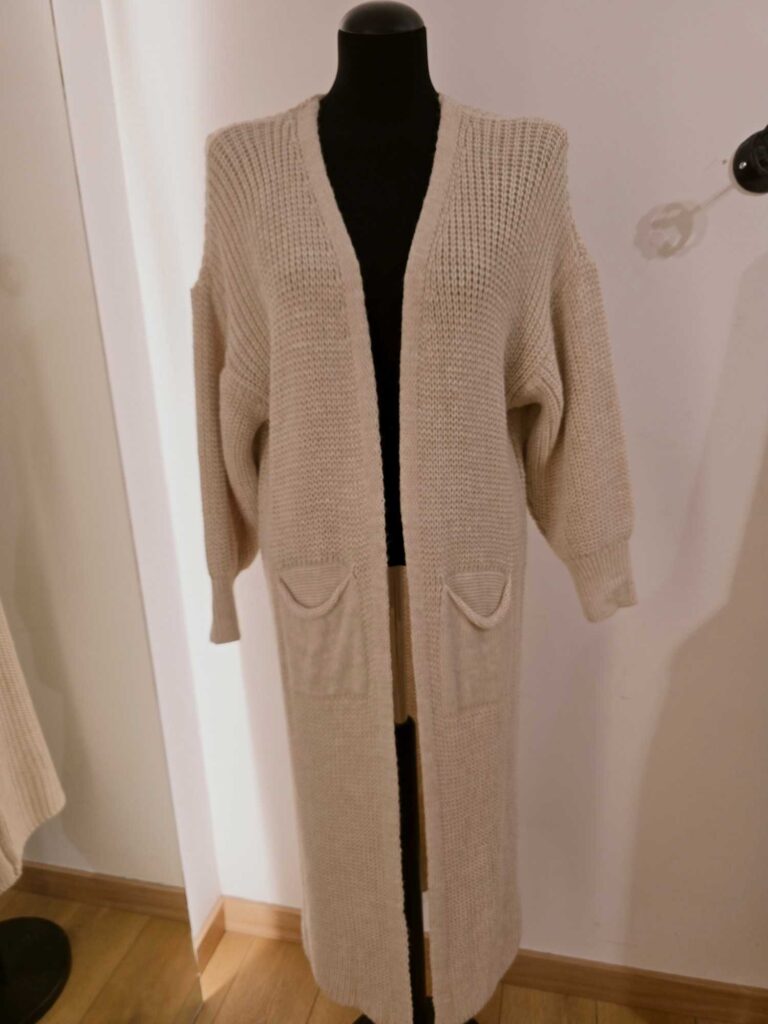 Pratique et fonctionnel, il dispose de poches sur l’avant, idéales pour garder vos mains au chaud ou ranger vos petits essentiels. Sa coupe longue et fluide permet de le porter facilement sur un jean, un pantalon slim ou même une robe, pour un style casual et élégant à la fois.