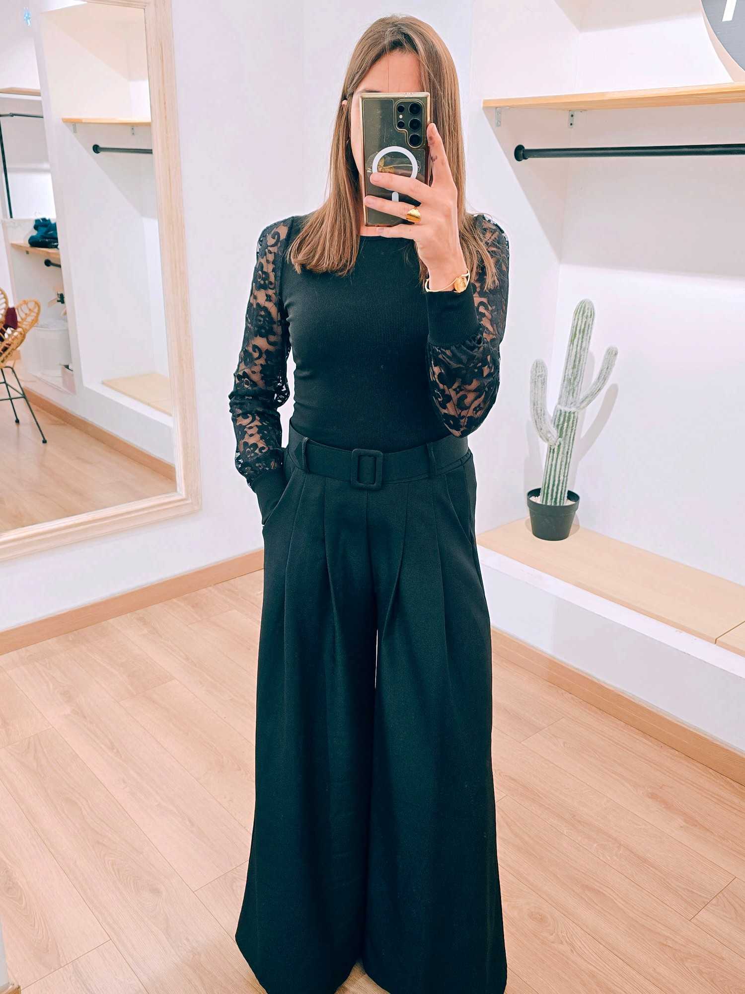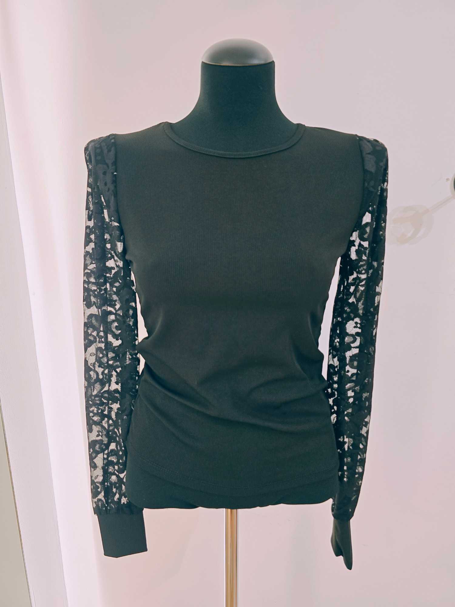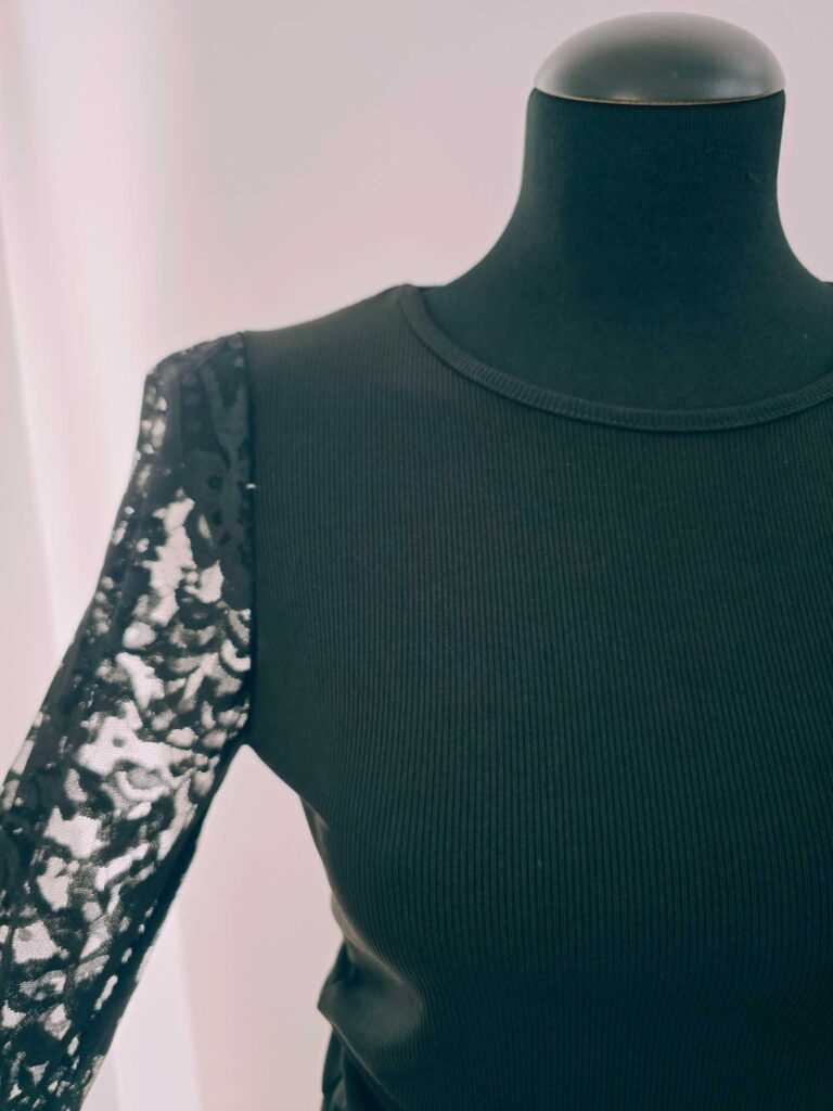 Alliez élégance et douceur avec ce haut à col rond doté de manches en dentelle, une pièce féminine et intemporelle parfaite pour sublimer toutes vos tenues. Sa coupe épurée met en valeur la silhouette avec simplicité, tandis que les manches en dentelle, délicatement travaillées, apportent une touche raffinée et romantique. Le contraste entre le tissu uni et la dentelle transparente crée un effet chic et moderne, idéal pour composer des looks à la fois sobres et élégants.