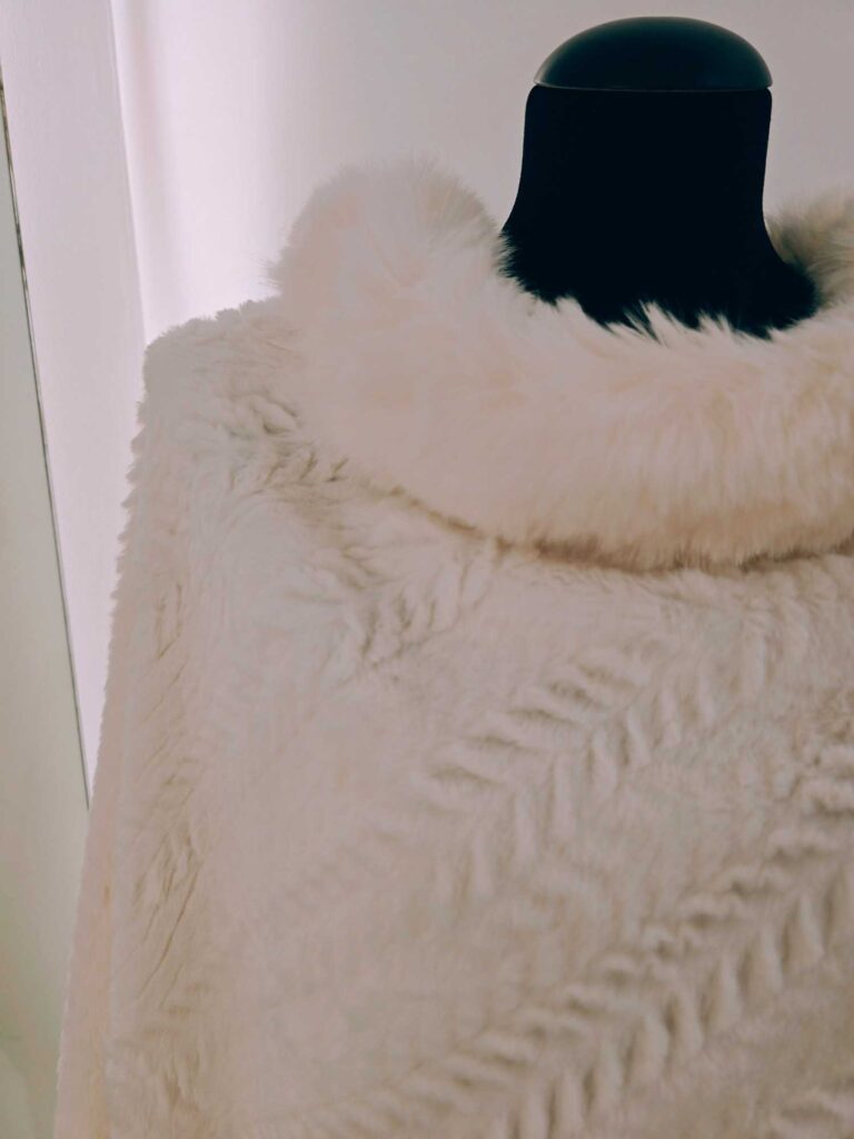 Ce poncho enveloppe le corps dans une matière moelleuse et réconfortante. Sa texture effet fourrure et son col généreux apportent une chaleur idéale pour l’hiver.