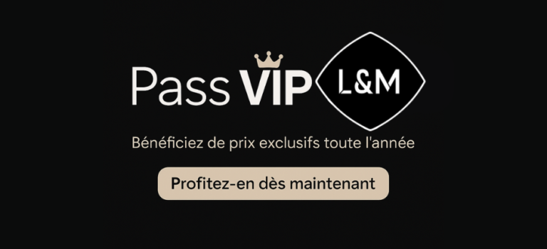 Une fois souscrit, en ligne ou en boutique, le Pass VIP L&M vous donne accès aux tarifs VIP sur les produits du site L&M, dès lors que vous êtes connecté à votre compte client.