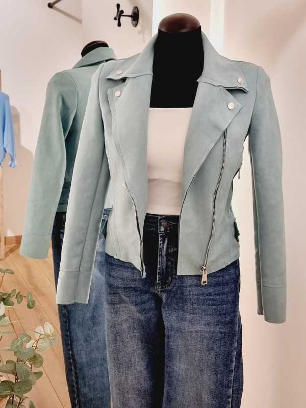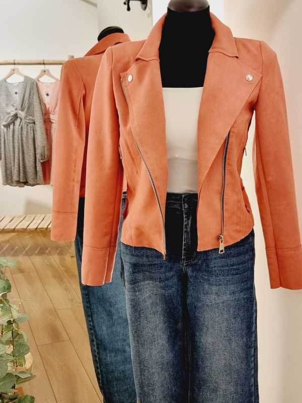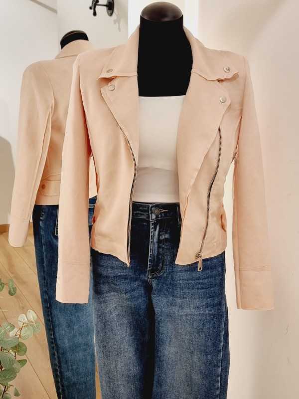 Le perfecto suédine coloré combine modernité, féminité et praticité, pour un vestiaire tendance et accessible.