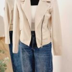 Le perfecto suédine coloré se porte aussi bien sur une robe fluide pour casser un look romantique que sur un jean et un t-shirt pour une allure plus casual. Il devient rapidement un indispensable du dressing grâce à sa polyvalence et à son style affirmé.