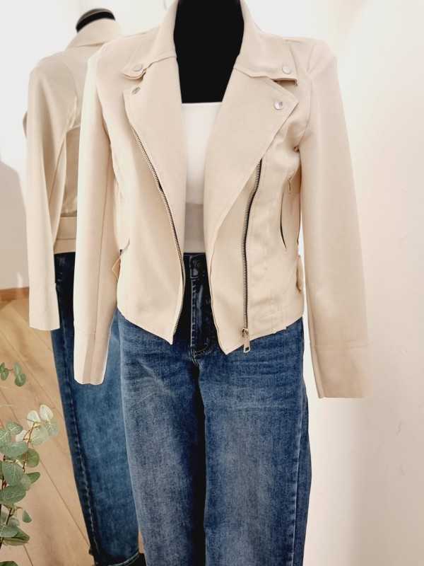Sa coupe ajustée met en valeur la silhouette tout en restant confortable. La fermeture zippée asymétrique et les détails métalliques apportent du caractère, tandis que la suédine offre une touche plus douce et féminine que le cuir traditionnel.
