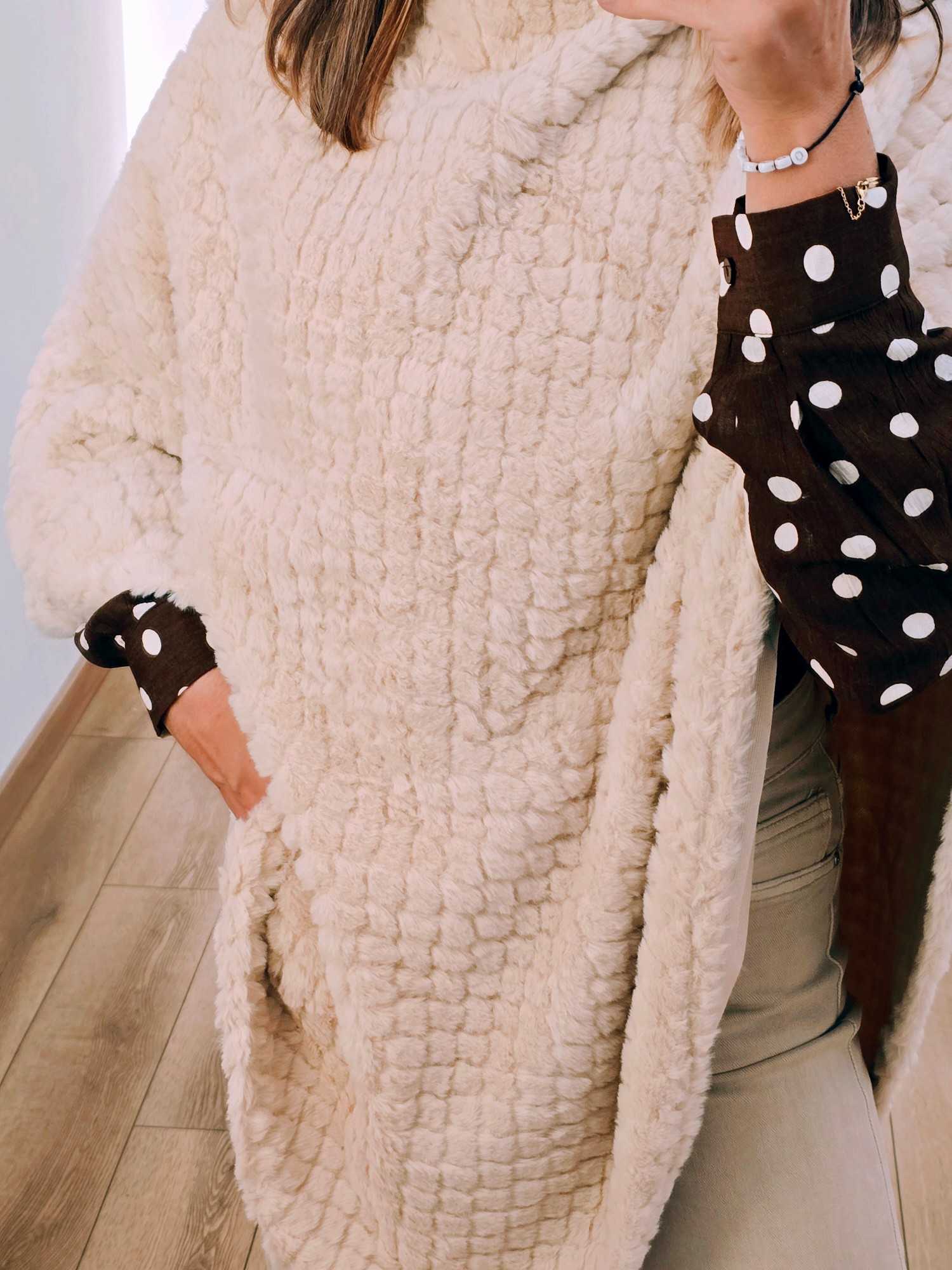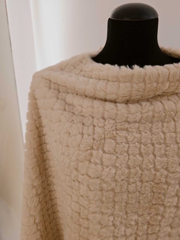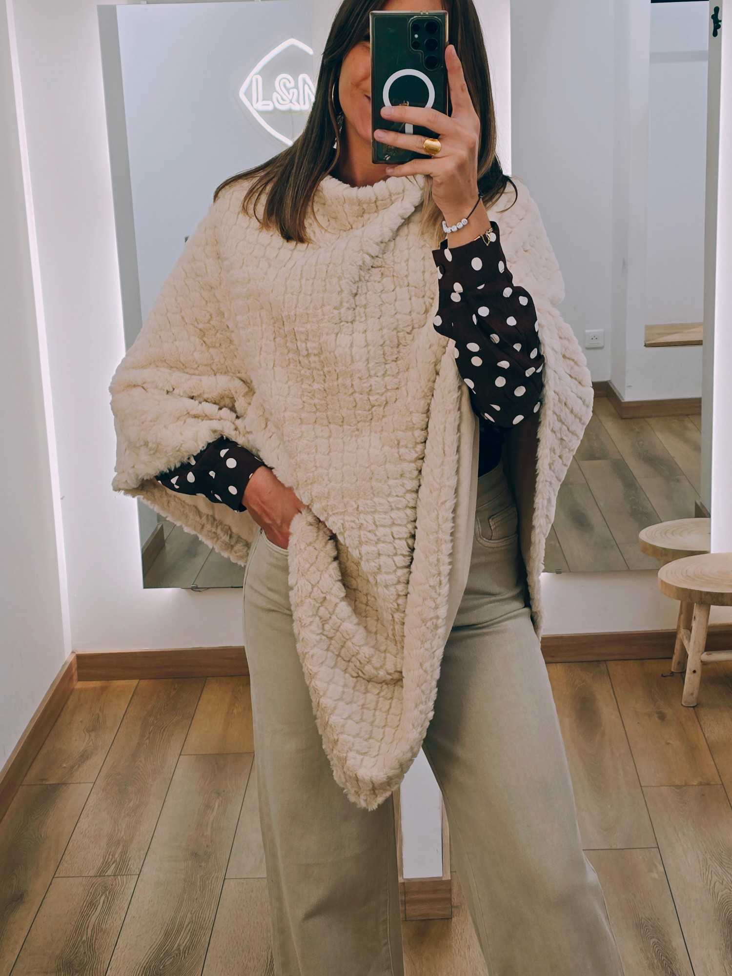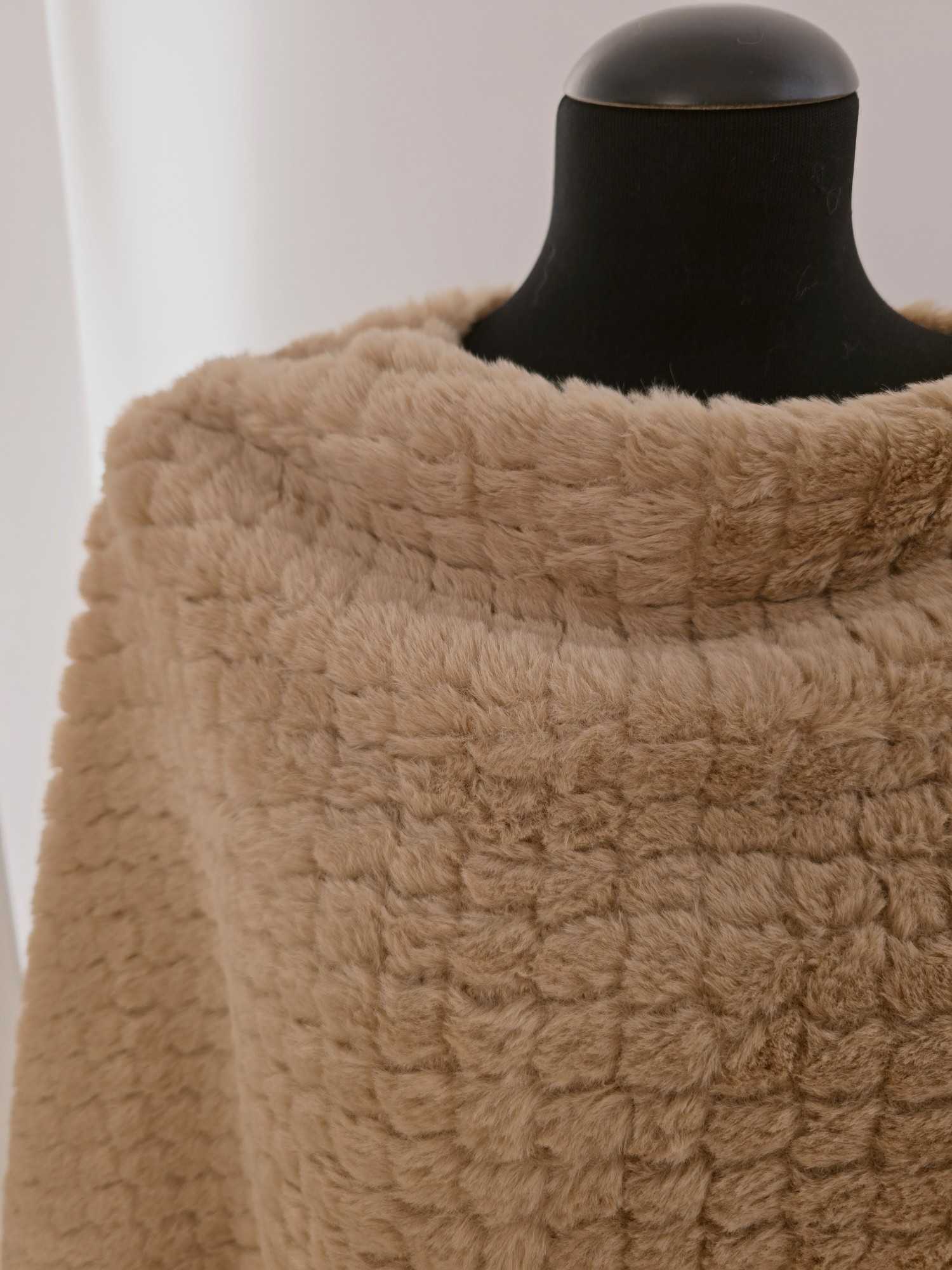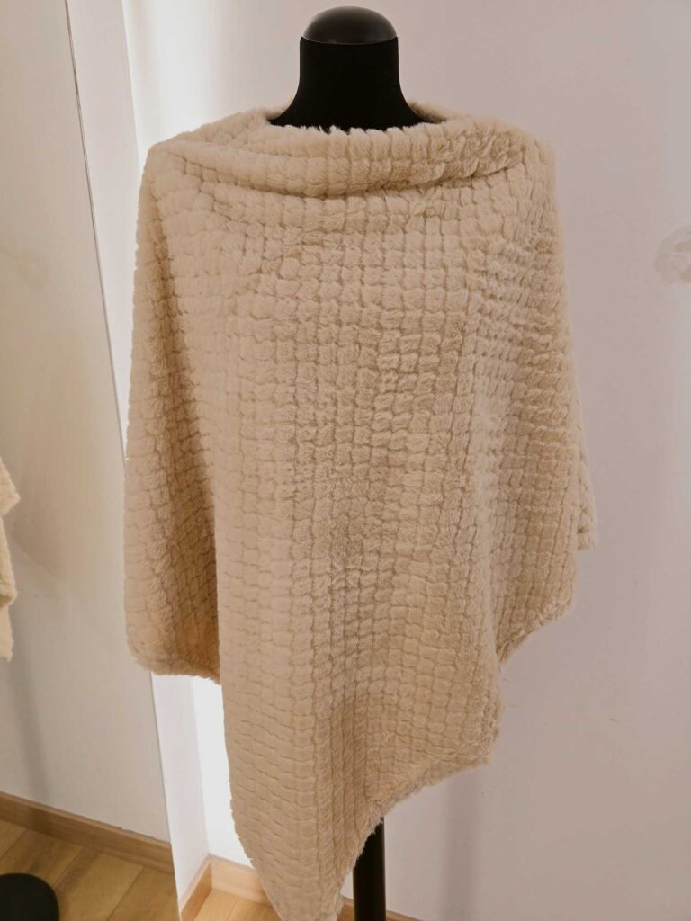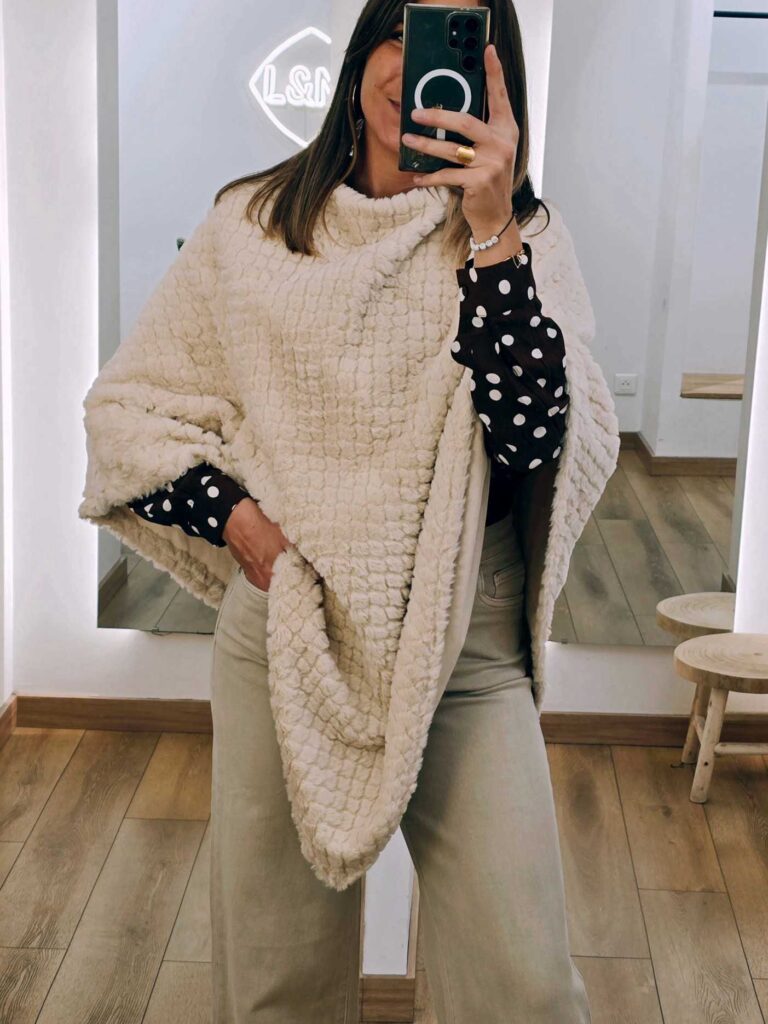 Le poncho en fausse fourrure est la pièce parfaite pour les journées froides : il apporte une chaleur réconfortante tout en restant incroyablement tendance. Sa matière moelleuse et son tombé harmonieux en font un incontournable de la saison hivernale.