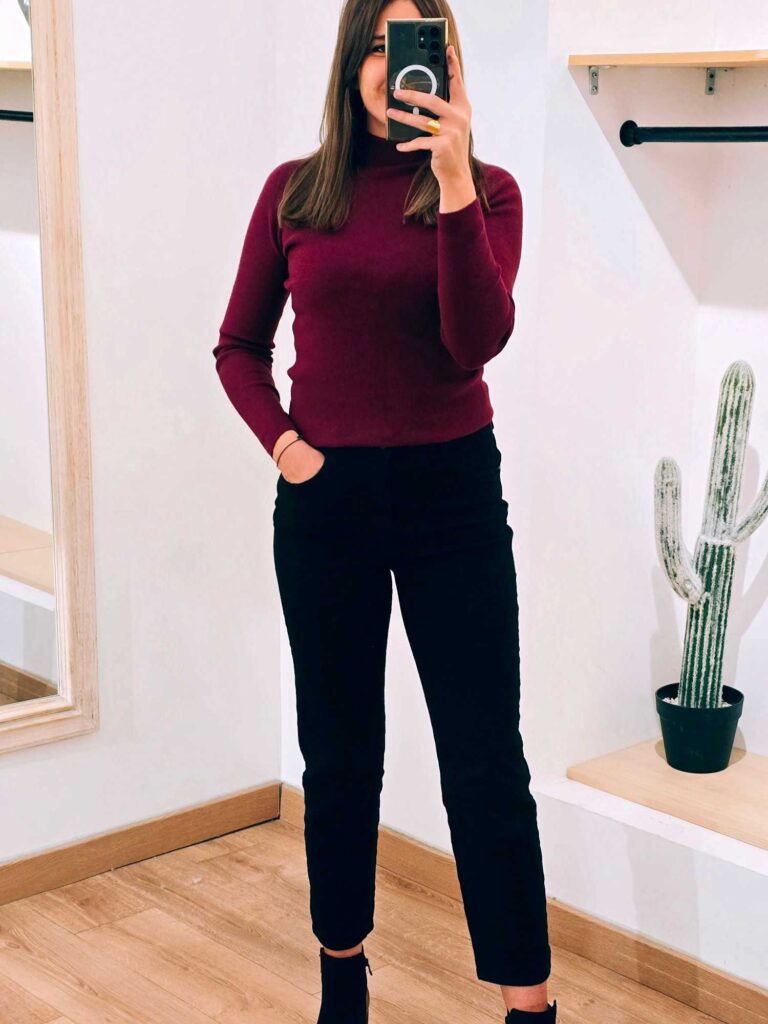 À la fois douillet, moderne et parfaitement tendance, ce pull bordeaux col cheminée côtelé devient rapidement un essentiel du quotidien, idéal pour créer des looks à la fois simples, élégants et cosy.