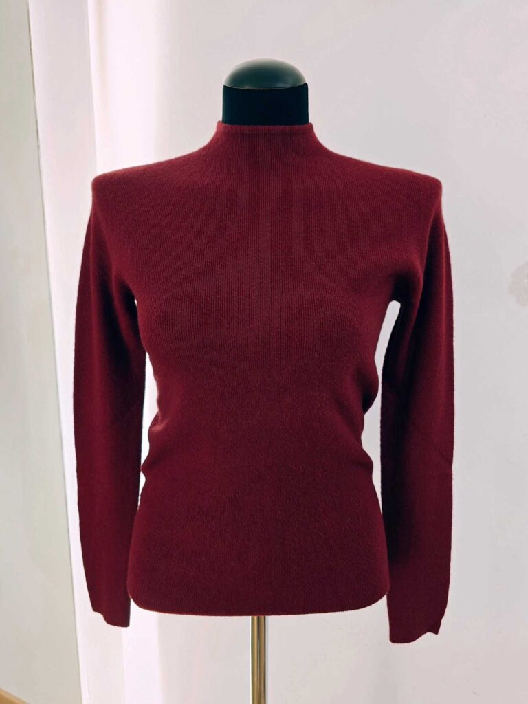 Grâce à sa texture subtilement côtelée, ce pull crée un effet visuel délicat qui met en valeur la silhouette sans la mouler. Sa coupe polyvalente permet de l’associer aussi bien à un jean casual, un pantalon tailleur ou une jupe élégante, selon l’occasion. La couleur bordeaux, profonde et intemporelle, apporte une note chaleureuse et sophistiquée qui s’intègre facilement dans toutes les garde-robes automne-hiver.
