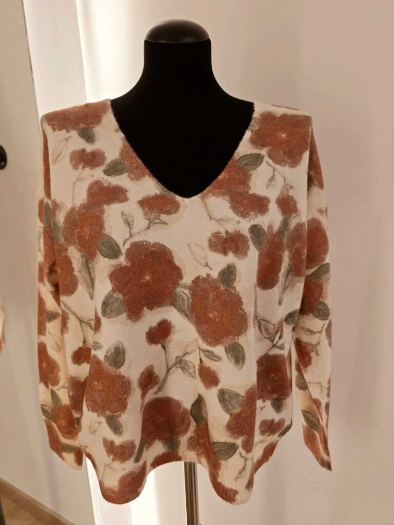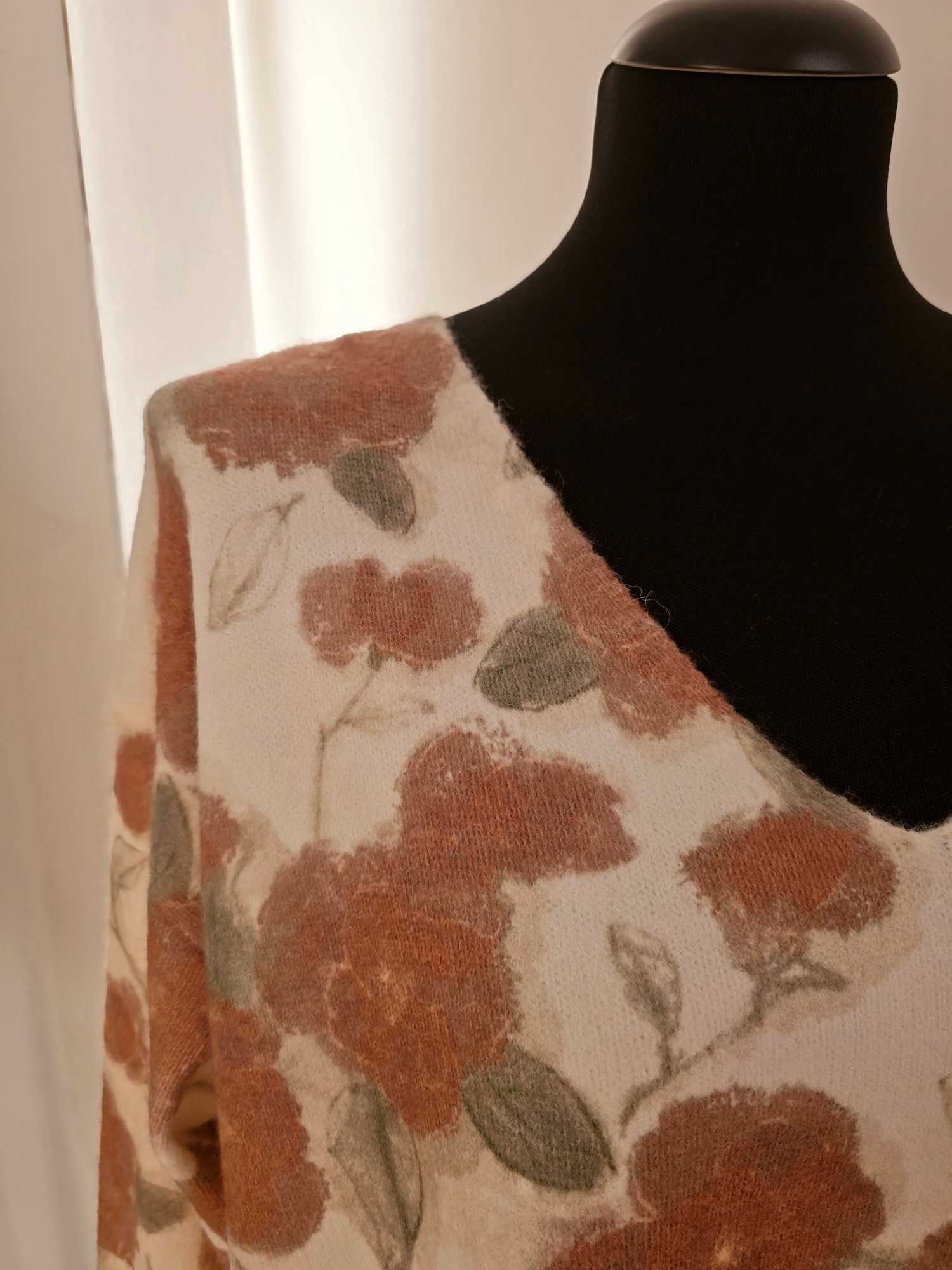 On adore son imprimé floral dans des tons terracotta et écru, qui apporte chaleur et lumière à la silhouette…