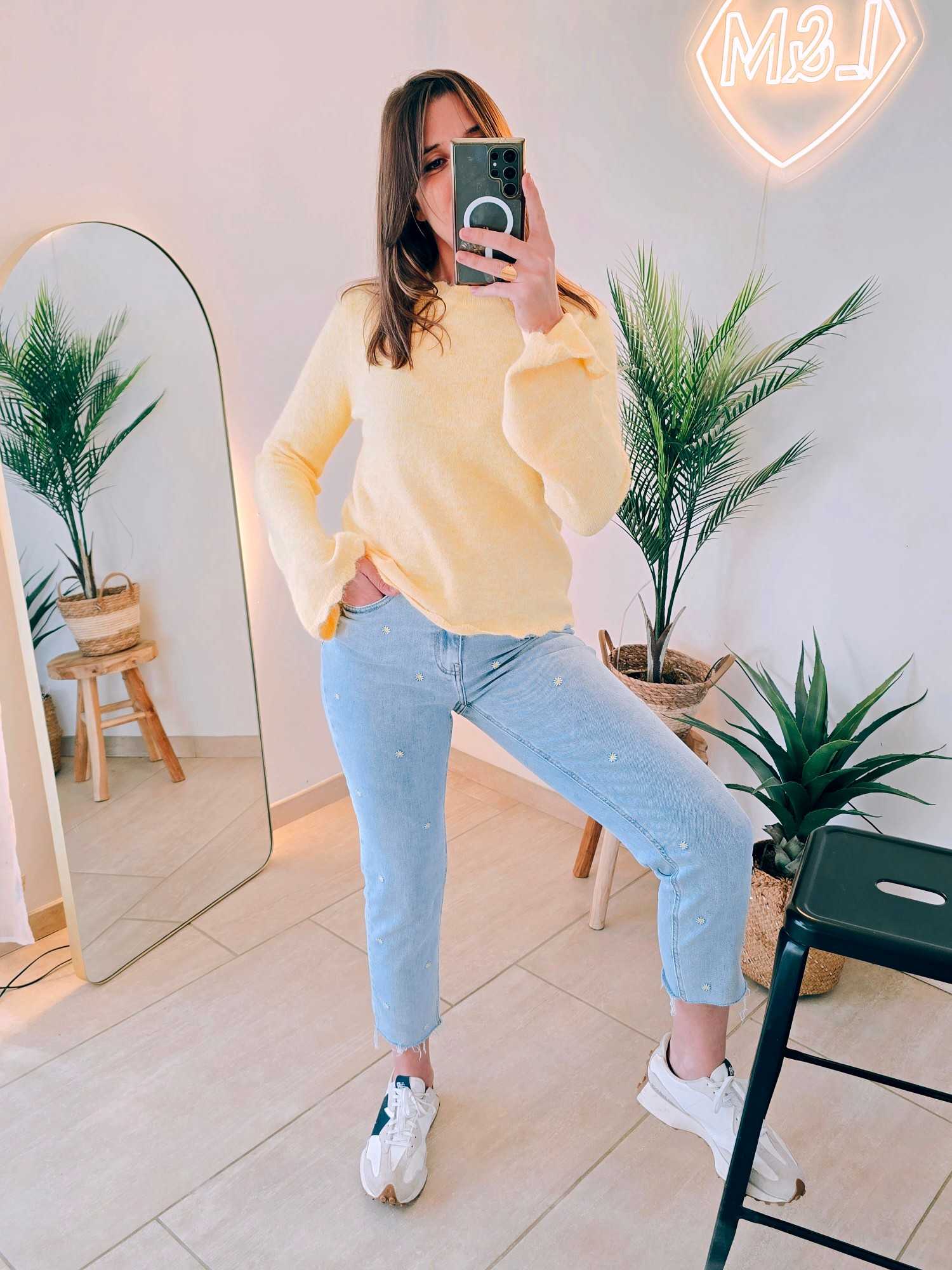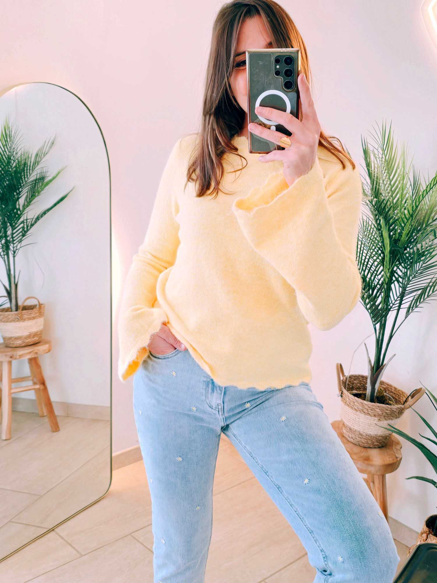 Confectionné dans une matière douce et agréable à porter, ce pull se marie facilement avec un jean, une jupe ou un pantalon habillé pour un look casual chic ou une tenue plus sophistiquée. Une pièce polyvalente qui illumine toutes vos tenues.