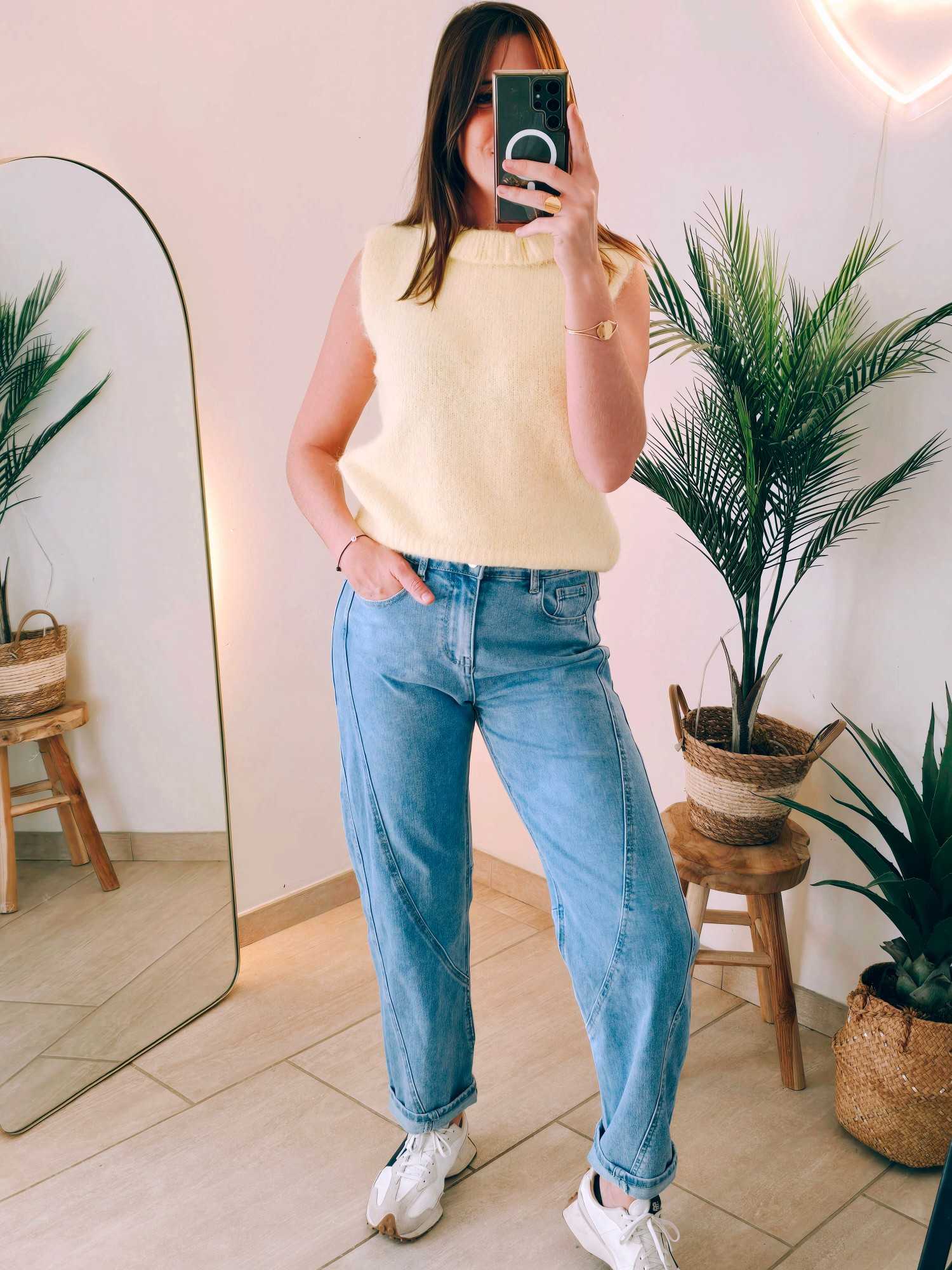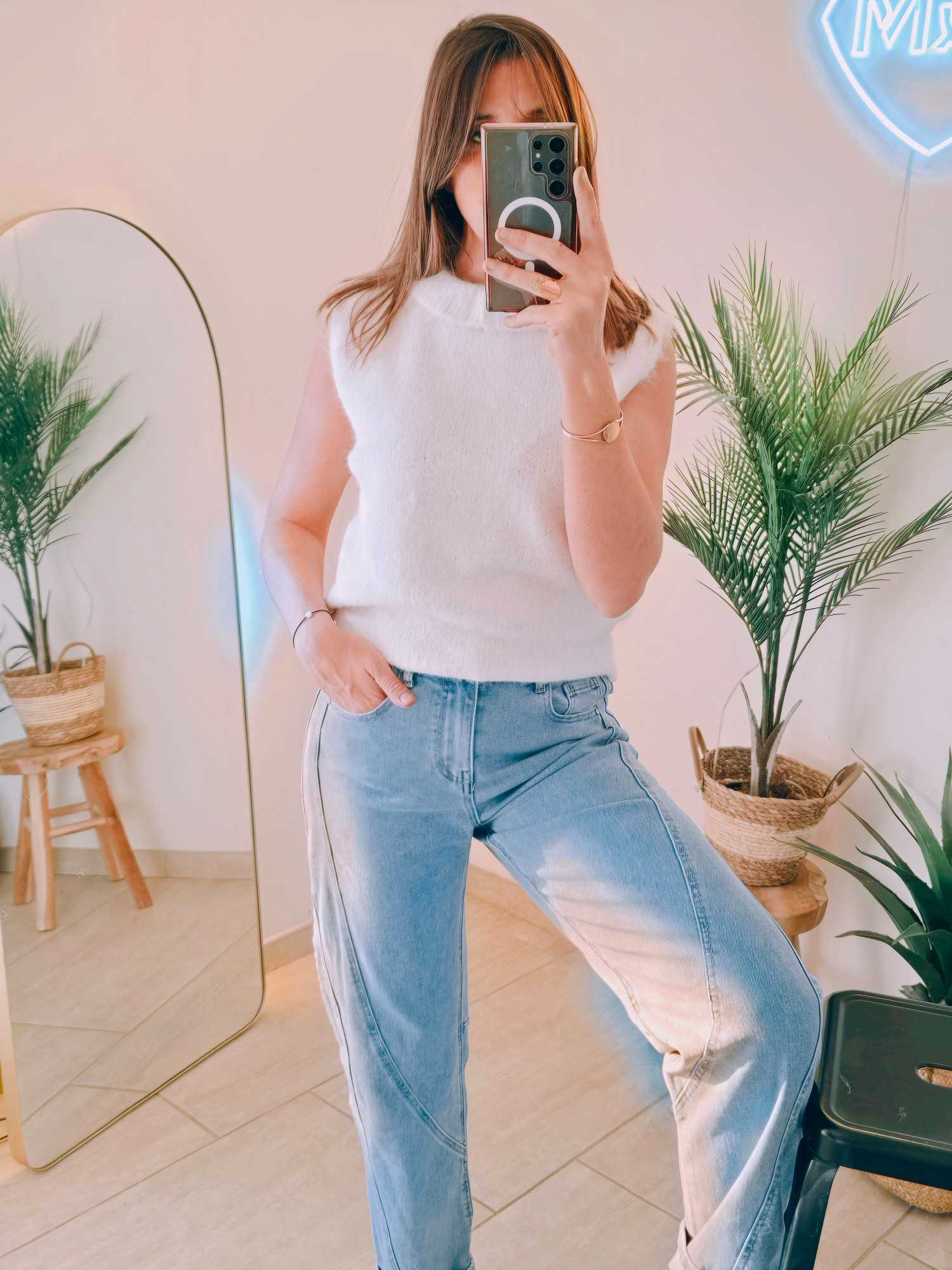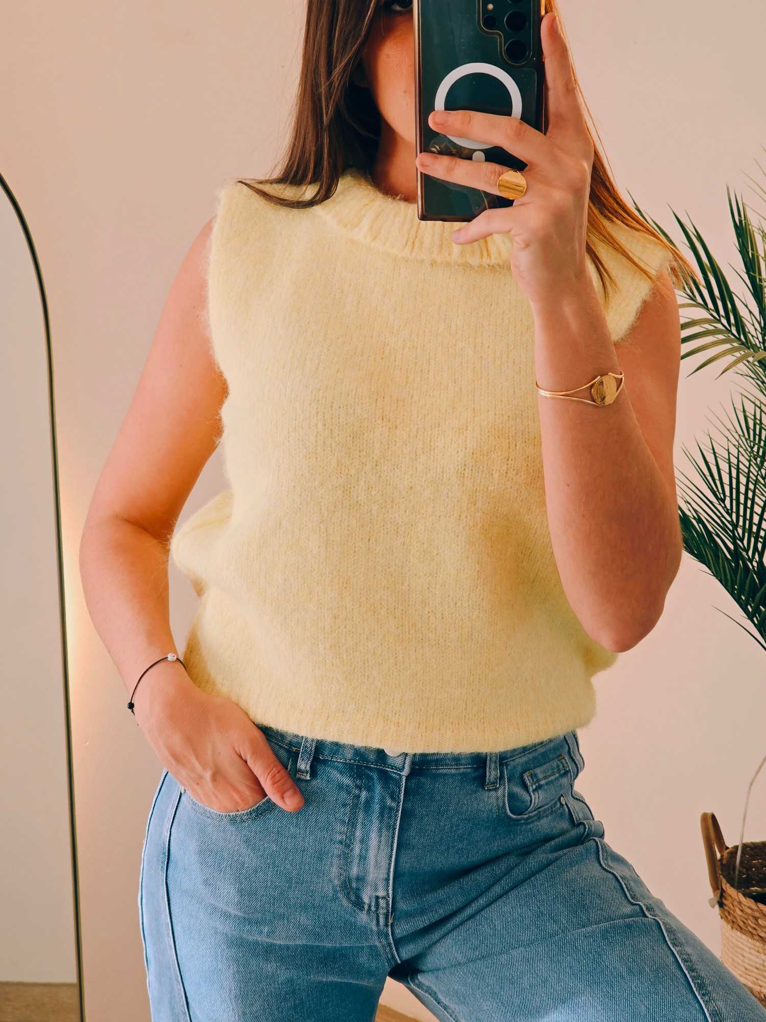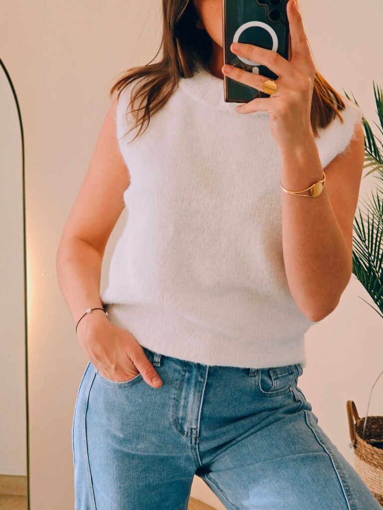 Confortable et facile à porter, ce pull sans manches se marie parfaitement avec un jean, une jupe ou un pantalon habillé, pour un look chic en journée comme en soirée. Sa coupe flatteuse met en valeur la silhouette tout en restant confortable.
