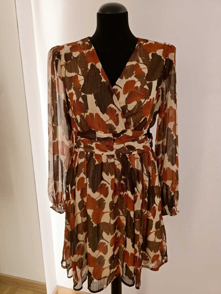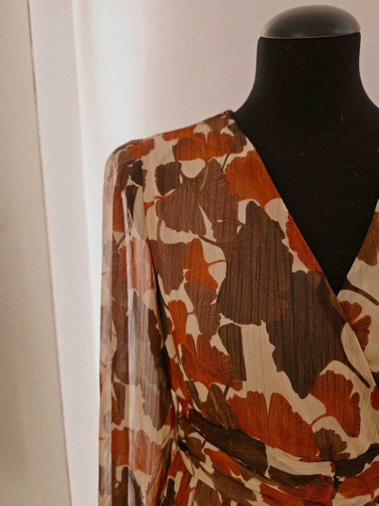 Succombez au charme naturel et lumineux de notre robe courte à imprimé feuillages, un modèle féminin et plein de caractère. Ses nuances chaudes de terracotta, chocolat et beige évoquent la douceur de l’automne et mettent en valeur toutes les carnations. Avec sa coupe fluide et son col V délicat, cette robe incarne à la perfection l’élégance décontractée et la féminité moderne.