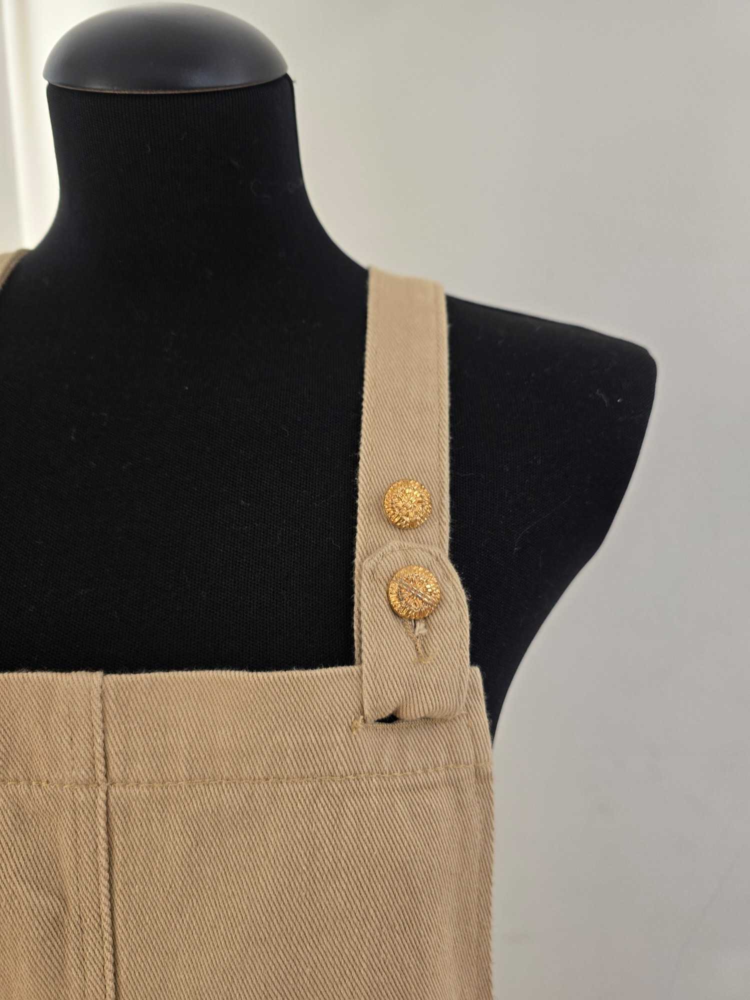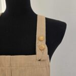 Les bretelles ajustables, ornées de deux boutons dorés, permettent d’adapter la longueur à votre morphologie et apportent une subtile note de brillance. Ces détails raffinés contrastent délicatement avec la teinte beige naturelle du denim, pour un rendu à la fois doux et lumineux.