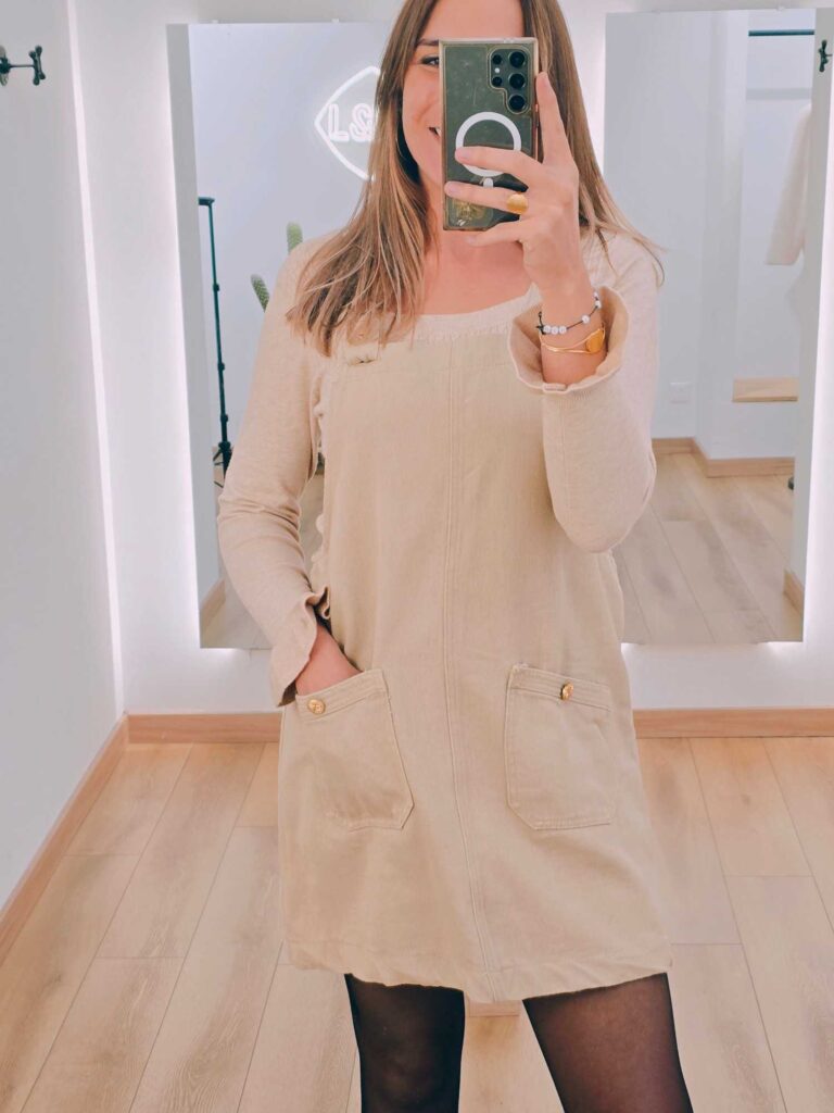 Cette robe salopette femme se distingue par son design intemporel et féminin, revisitant la classique salopette en version robe. Sa coupe légèrement évasée met en valeur la silhouette tout en restant confortable. Les deux grandes poches plaquées à l’avant ajoutent une touche pratique et décontractée, tout en soulignant l’esprit utilitaire chic du modèle.