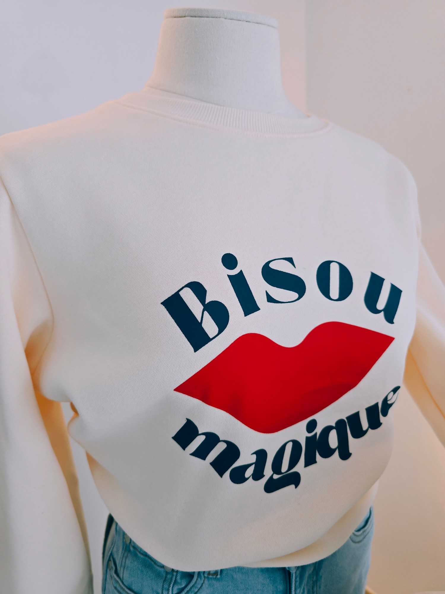 Le sweat Bisou magique s’impose ainsi comme une pièce forte du vestiaire casual : un mélange réussi entre confort, style et bonne humeur.